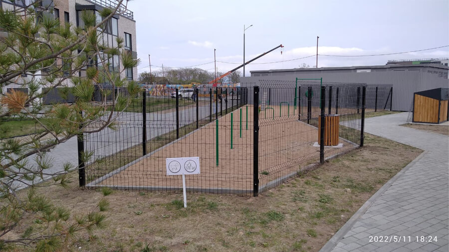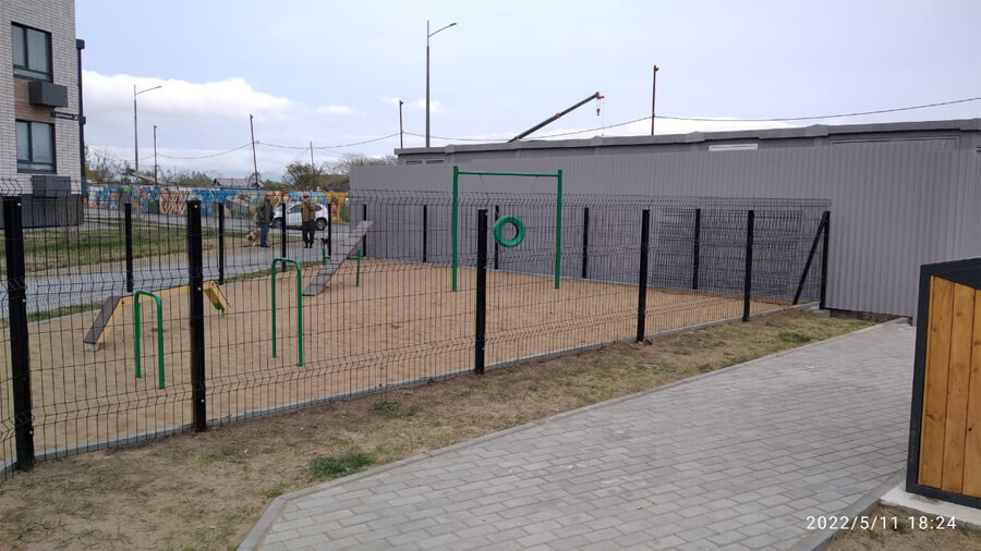 Ограждение спортивной площадка 3D-забором, общий периметр 85 метров