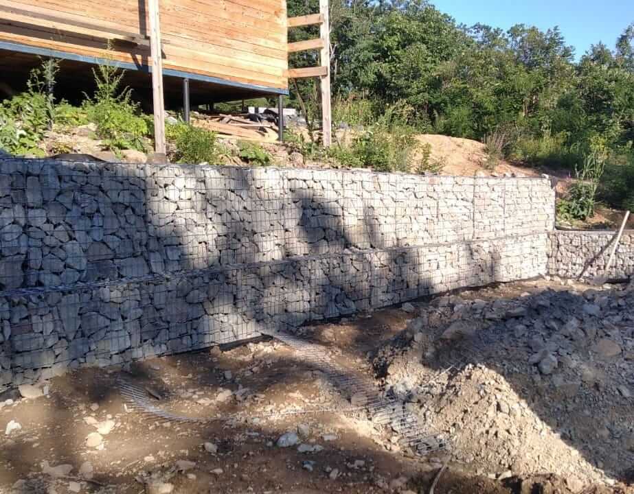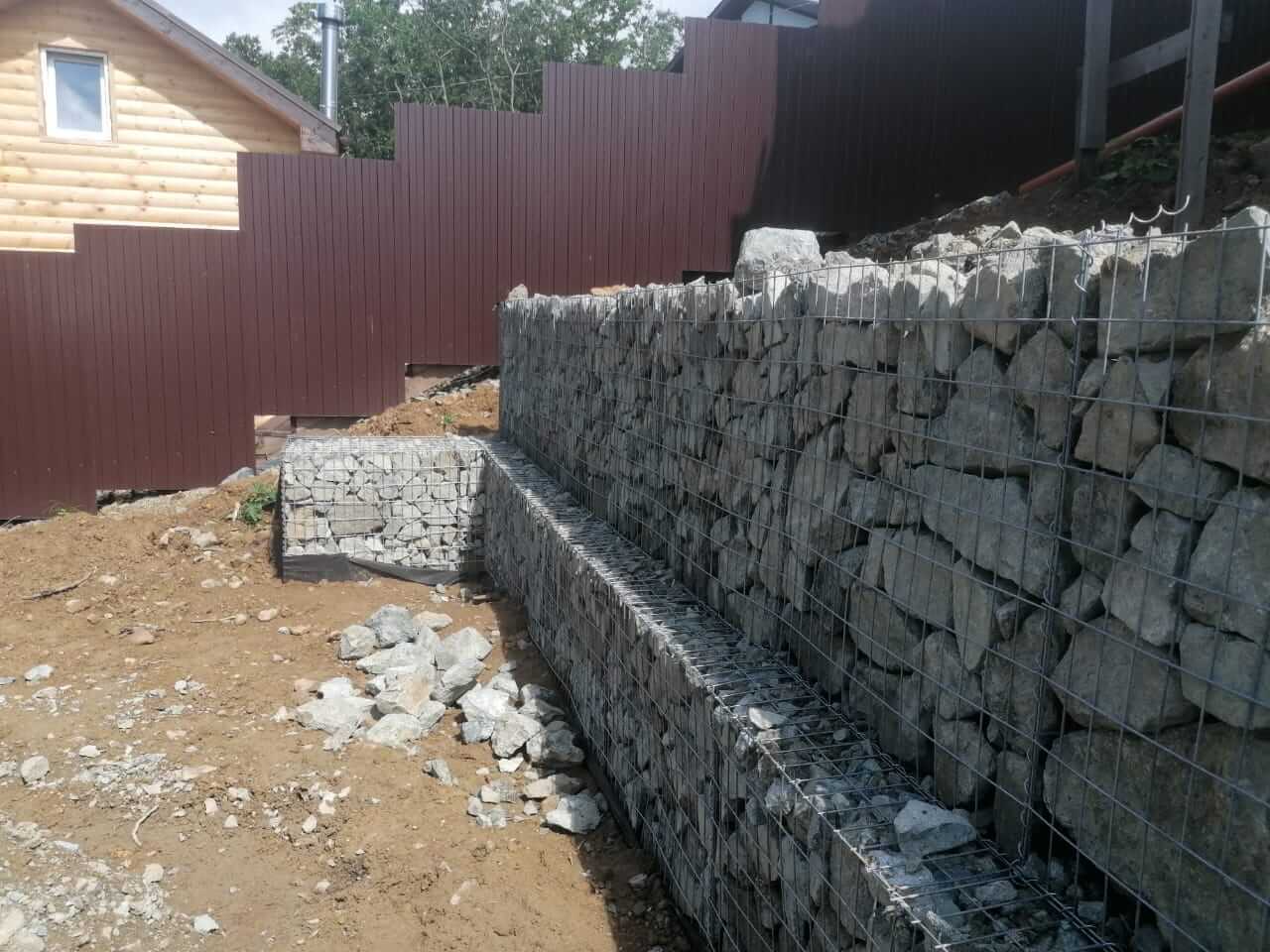 Срок работ: до 5 рабочих дней. Были применены сварные габионы размерами длина 1000 мм, ширина 800мм, высота 2000мм.